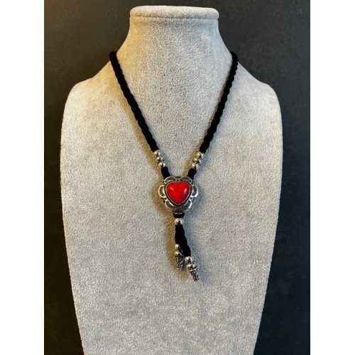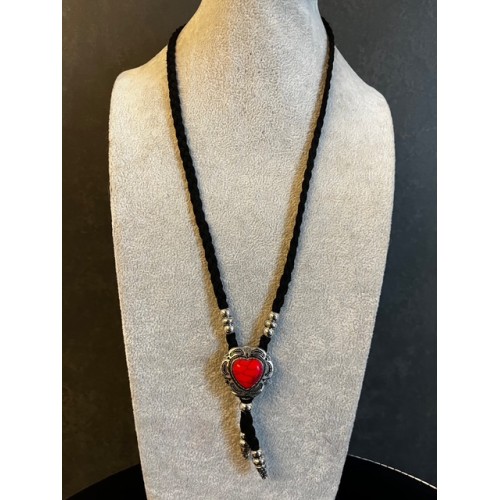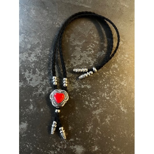 Collana regolabile intrecciata in alcantara Black with Red Heart