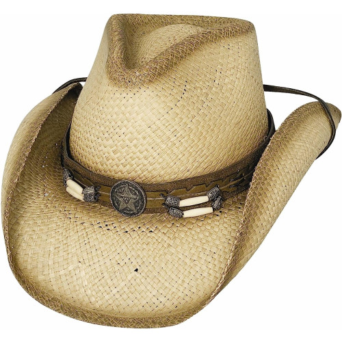Il cappello in paglia di alta qualità "Dundee" di Bullhide presenta una fascia con stella sceriffo con il longhorn di Bullhide al centro.