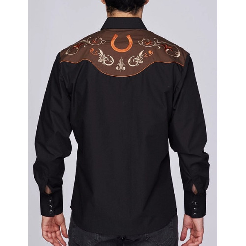 Camicia Rodeo Clothing con ricami western sul carrè anteriore e posteriore. Bottoni a pressione.