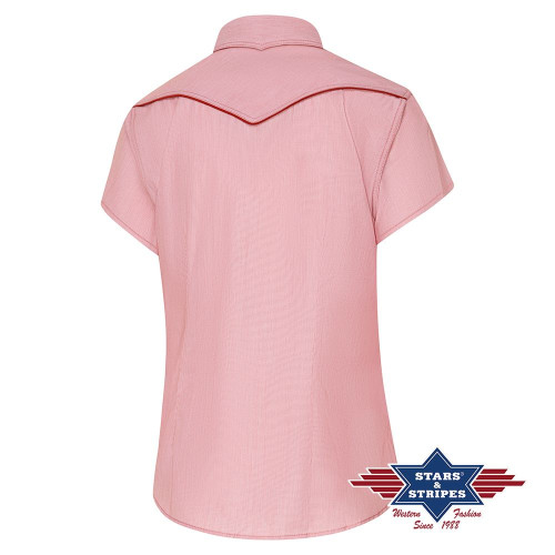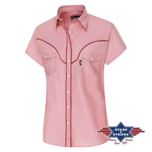 Camicia western a maniche corte color rosa con piping a contrasto. Bottoni a pressione.