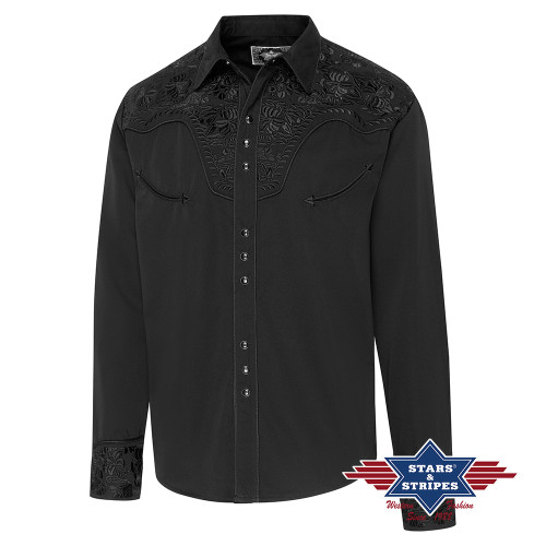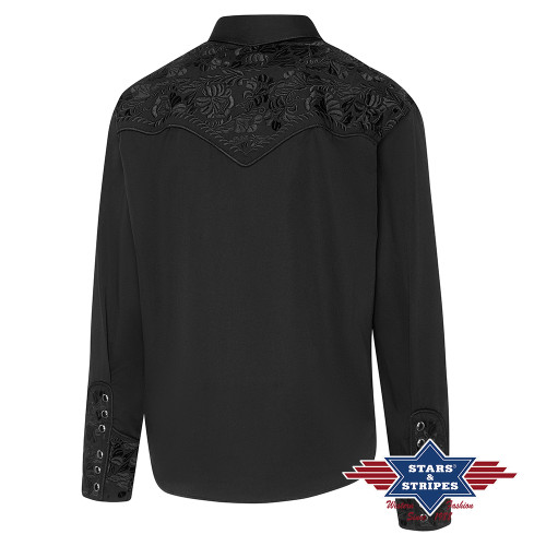 Camicia western Stars & Stripes Riley Splendida camicia western nera con splendidi ricami s..