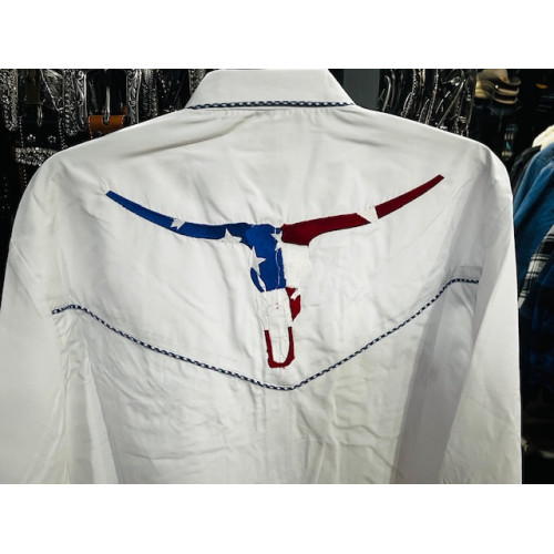Camicia Senor De Los Cielos Style 2 White - Longhorn Emboidered