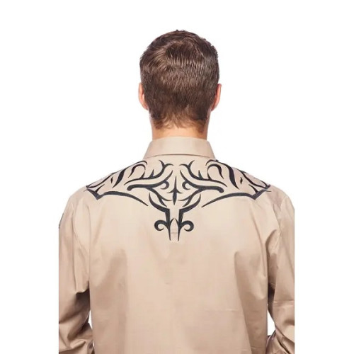 Camicia western Rodeo Clothing con ricami sul carrè anteriore e posteriore. Bottoni a pressione.