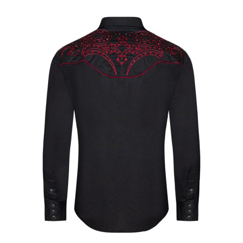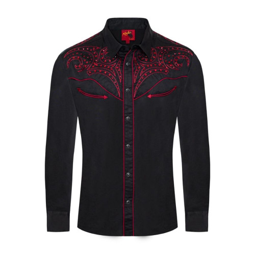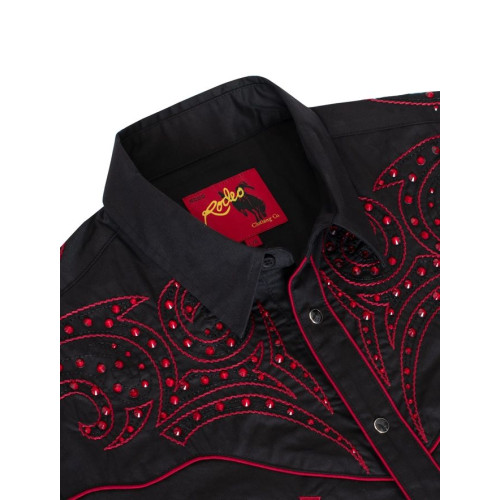 Camicia Rodeo Clothing con ricami in stile western e strass sul carrè anteriore e posteriore. Bottoni a pressione.