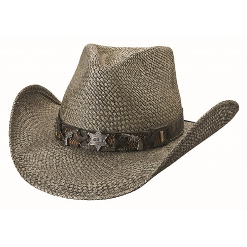 Il cappello in panama di alta qualità "Law Enforcement" di Bullhide presenta una fascia per il cappello stella sceriffo e pistole.