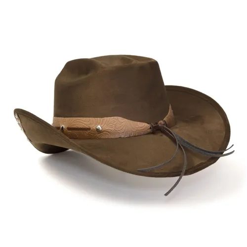 Cappello western in suede effetto pelle scamosciata, di alta qualità, con elastico interno che lo adatta benissimo a tutte le forme di testa. Made in Mexico.
