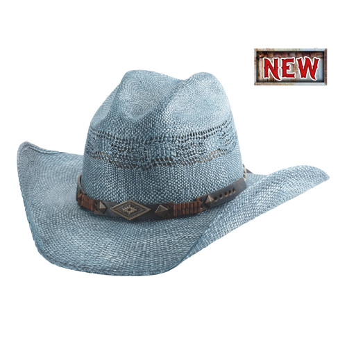 Il cappello in paglia di alta qualità "Full Speed" di Bullhide combina la bellezza della paglia straw con il fascino di un particolare cappello color denim.