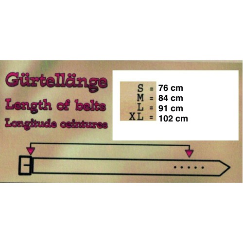 Le misure fanno riferimento alla cintura dall'inizio (fibbia esclusa) al foro mediano di allacciatura (terzo) fare riferimento alla foto delle taglie in caso di dubbi.
