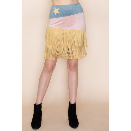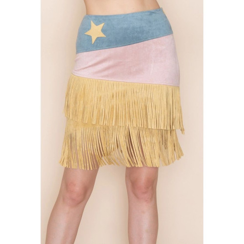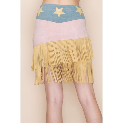 Gonna Vocal combo pink con stelle e frange - in ecopelle effetto scamosciato