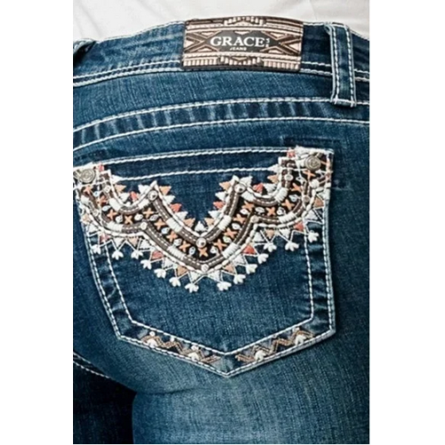 Jeans bootcut Grace in LA Aztec Embroidered Pockets - Easy Fit Medium Waist