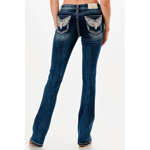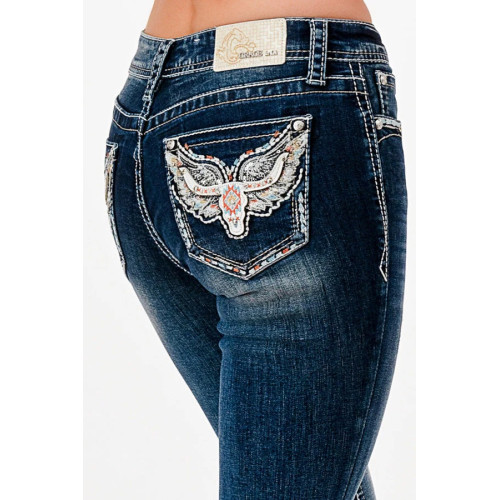Jeans bootcut Grace in LA Wings and Skull - Easy Fit Medium Waist