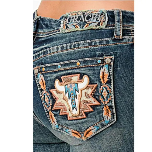 Jeans bootcut Grace in LA Skull and Feathers - Easy Fit Medium Waist