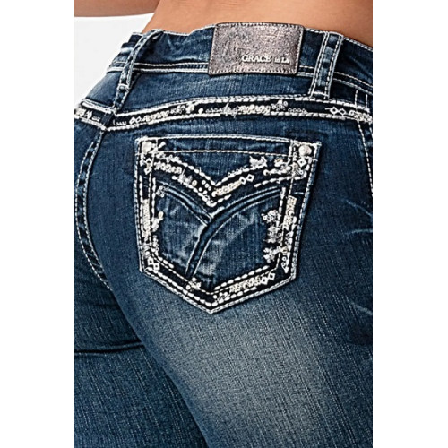 Jeans bootcut Grace in LA Embellishment Detailed Faux Flap