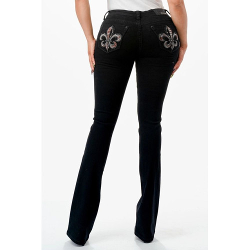 Jeans bootcut Grace in LA Fleur De Lis Black