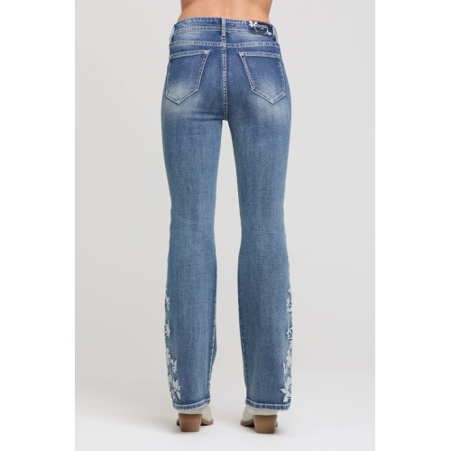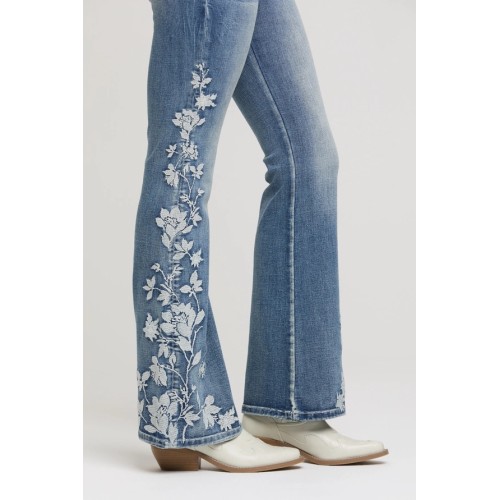 Jeans bootcut flare Grace in LA Flowers - High Waist