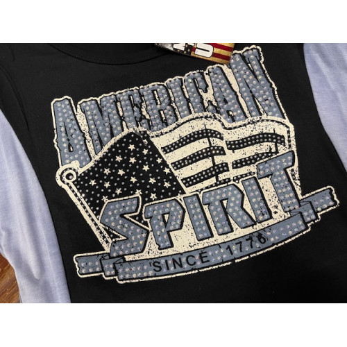 Top Liberty Wear con scritta American Spirit impreziosita da strass.