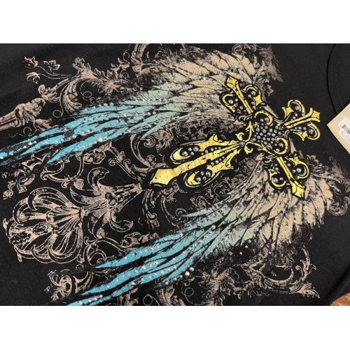 Top Liberty Wear con design vintage con design a croce e ali impreziosito da strass con una parte posteriore semplice.