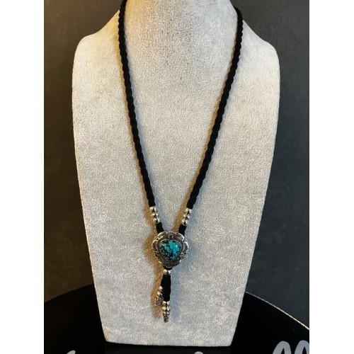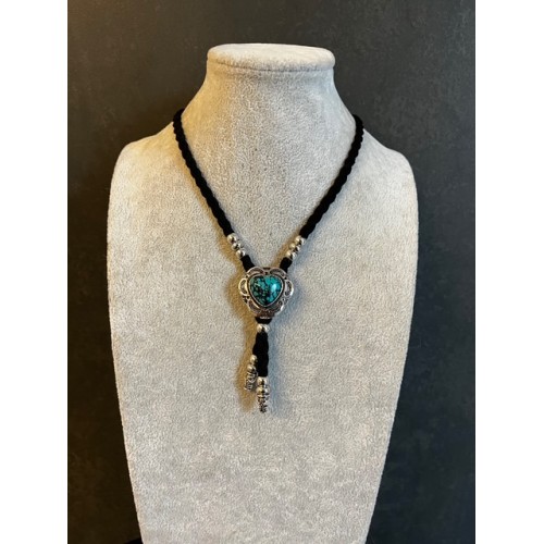 Collana regolabile intrecciata in alcantara Black with Turquoise Heart