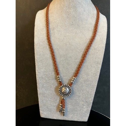 Collana regolabile intrecciata in alcantara Brown with Silver Horse
