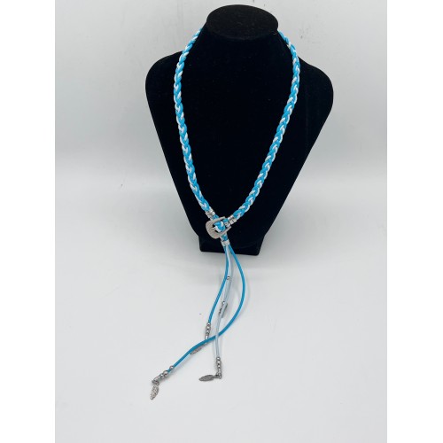 Collana/girocollo con fibbietta - intreccio a mano White Blue