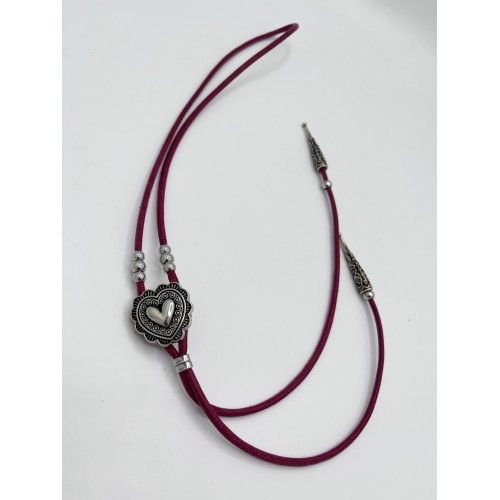 Collana Regolabile Burgundy with Heart Silver