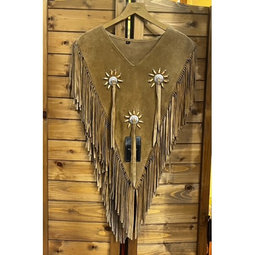 Poncho in pelle con frange da donna Kerosen cognac - indicata taglia L ma venduto come taglia unica S/L