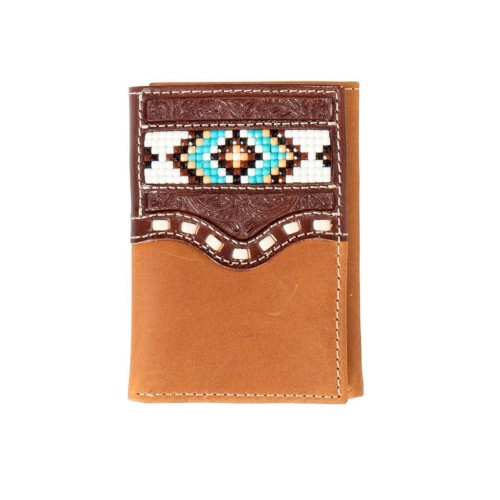 Portafoglio Trifold da uomo in pelle Nocona Floral Buck Lace Brown