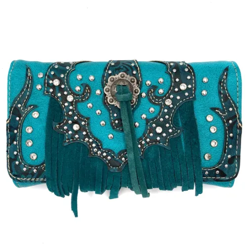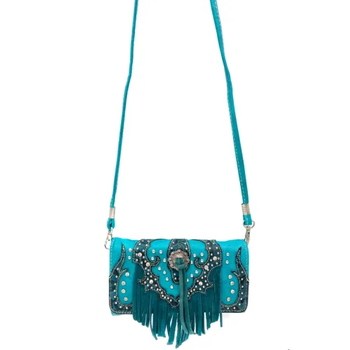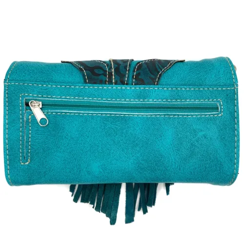 Portafoglio con Frange Turquoise in Ecopelle - con Tracolla