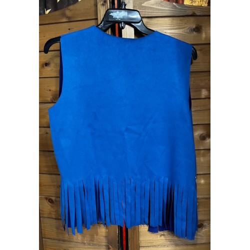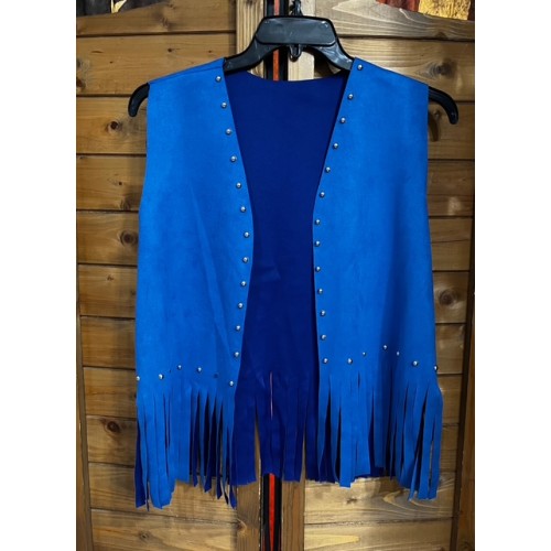 Gilet con Frange e Borchie Blu - effetto scamosciato ecopelle