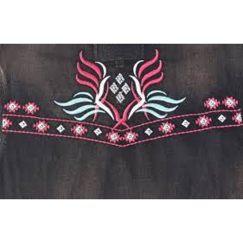 Blusa western in cotone leggero con ricami, cuciture decorative, bottoni scintillanti, rifinitura a forma di fiore. Bottoni a pressione.