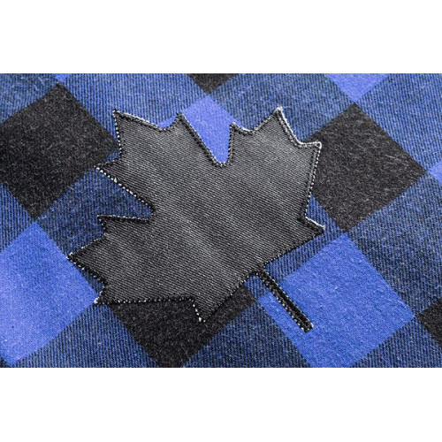 Camicia western a quadri con rifiniture sulle spalle in denim nero e applicazione a forma di foglia d'acero, bottoni automatici.