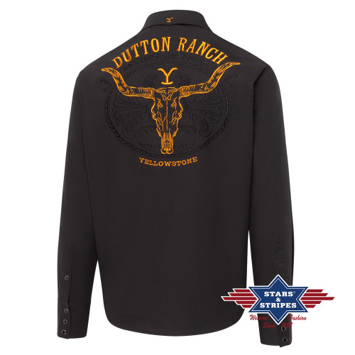 Raffinata camicia Western Yellowstone con ricamo bicolore premium sul retro. Il carré western è valorizzato da profili a contrasto. Le tasche sul petto applicate con bottoni a pressione richiamano il classico stile da cowboy workwear. Il marchio Yellowstone "Y" è ricamato sulle tasche del petto, sulle punte del colletto e sul retro del collo. La camicia unisce un tessuto di facile manutenzione a una vestibilità sartoriale, rendendola accattivante non solo per i fan del Dutton Ranch.