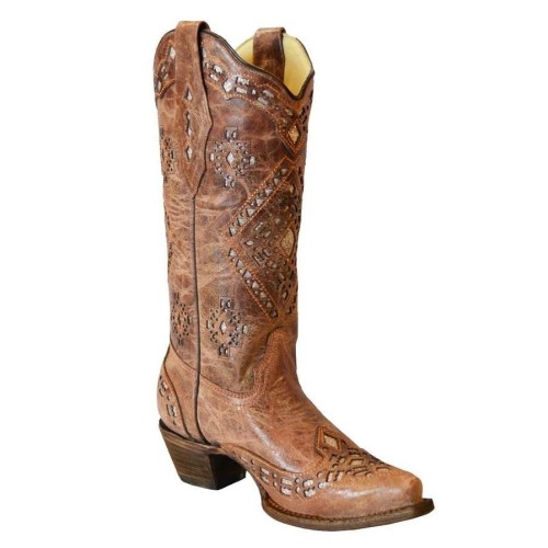 Stivali in pelle Western Corral Boots Sand Glitter Inlay