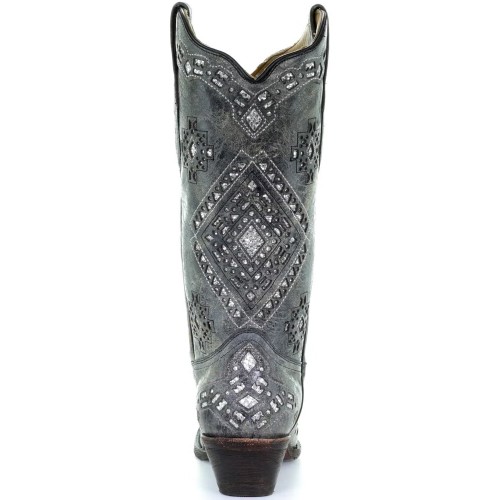 Stivali in pelle Western Corral Boots Silver Glitter Inlay