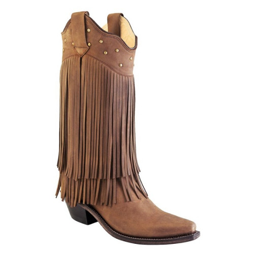 Stivali in pelle Western Boots Old West Fringe Brown
