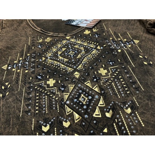 Questa T-Shirt Top Liberty Wear presenta un design geometrico in lamina d'oro accentuata da strass. Realizzato con cura negli Stati Uniti.