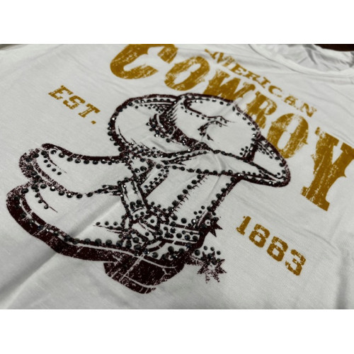 Canotta con frange con scritta «American Cowboy» impreziosita da strass. Realizzato con cura negli Stati Uniti.