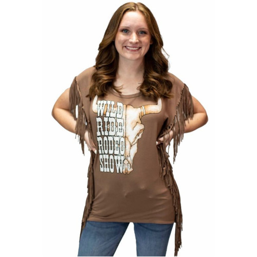 Questo Top senza maniche Liberty Wear presenta frange su tutta la lunghezza e la scritta «Wild Ride Rodeo Show». Realizzato con cura negli Stati Uniti.