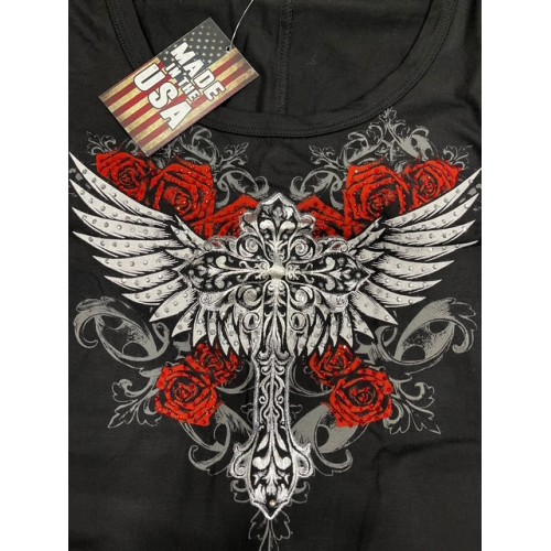 Top Canotta Liberty Wear Cross Wings Roses - MADE IN USA