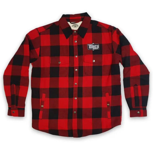 Giacca in flanella nera rossa - 100% cotone - Fodera in pile Sherpa - Maniche trapuntate.